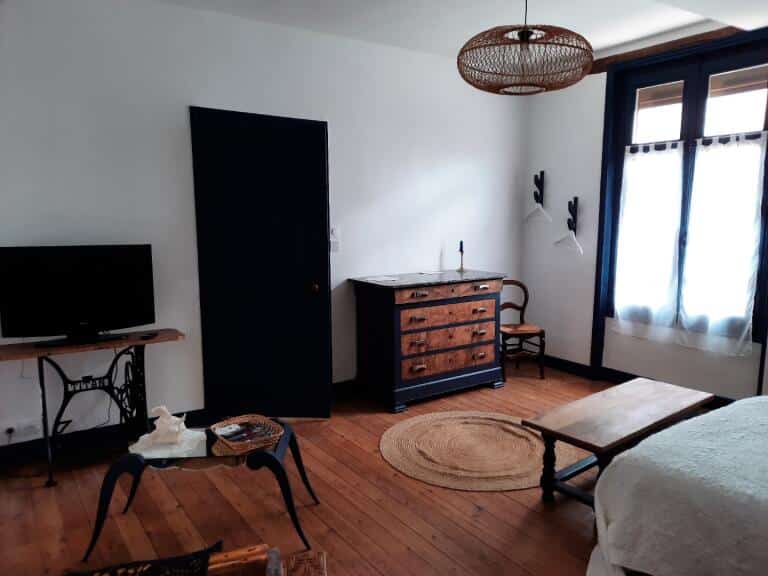 Location chambre fleurie lit 160 salle d’eau wc séparé . Table d’hôtes sur réservation. Piscine chauffée ouverte selon la saison.
